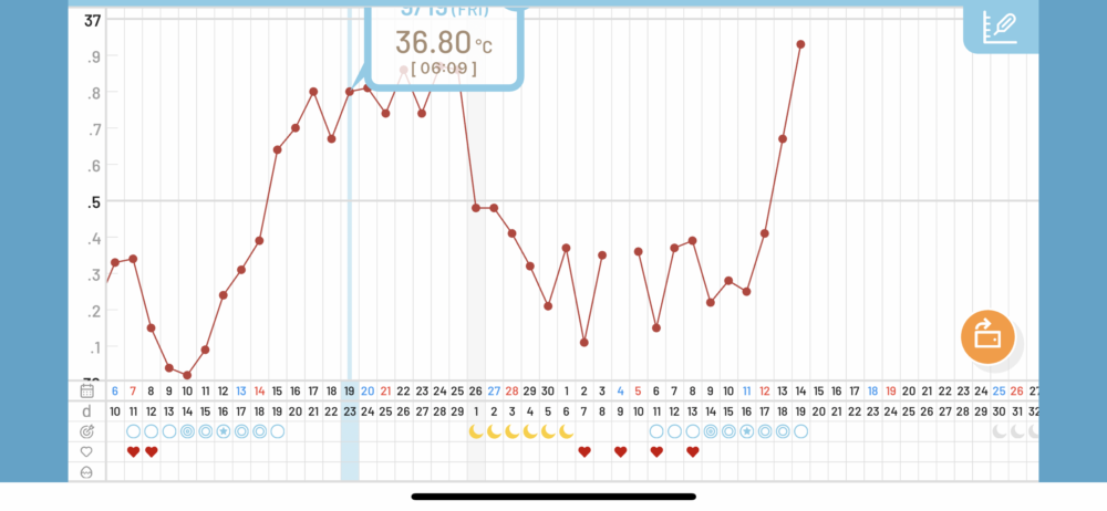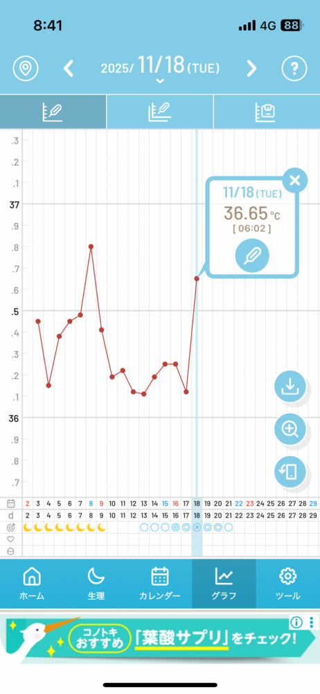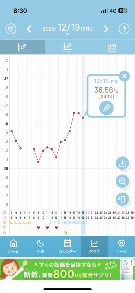 排卵予定日の画像と直近の生理周期の画像を送ります。