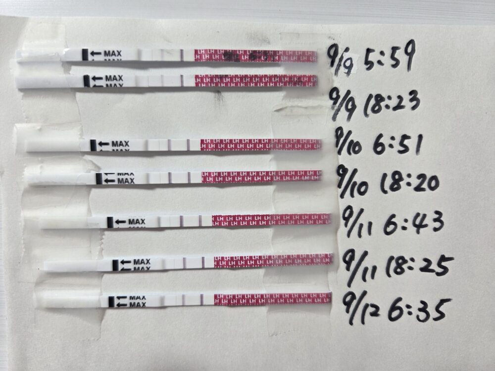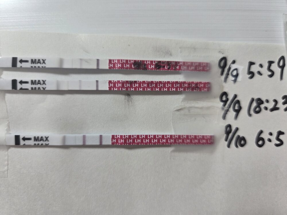 9/11夜の18時から薄くなり,9/12朝は完全に陰性反応に戻りました。 9/11夜~9/12(D16)に排卵していたと考えていいと思います。 9/10夜のタイミングはとても良かったです!