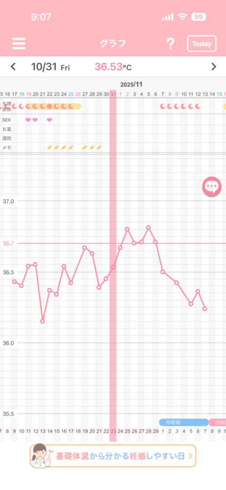 念のため基礎体温グラフと生理周期の画像貼っておきます。