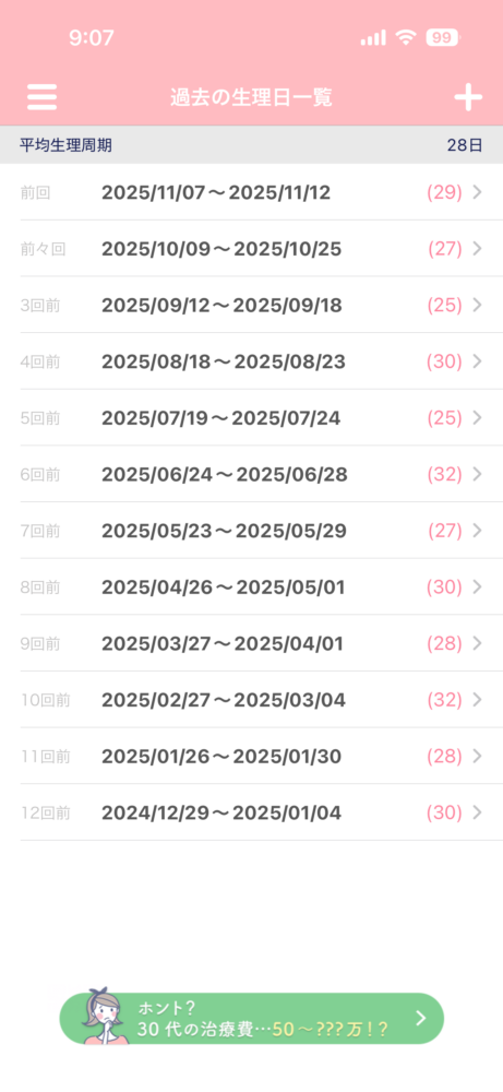こんにちは。 画像を確認しました。 生理開始日:11/7 直近周期日数:29,27,25,30,25,32,27